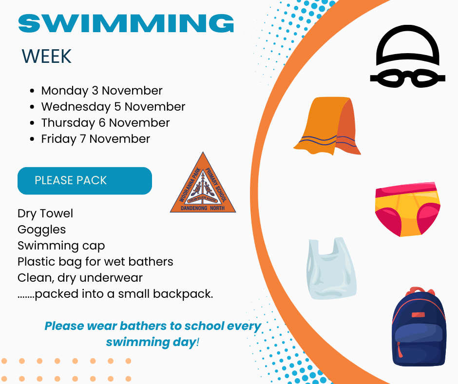 On each of these days students will need to come to school with their bathers on under their uniform each day.