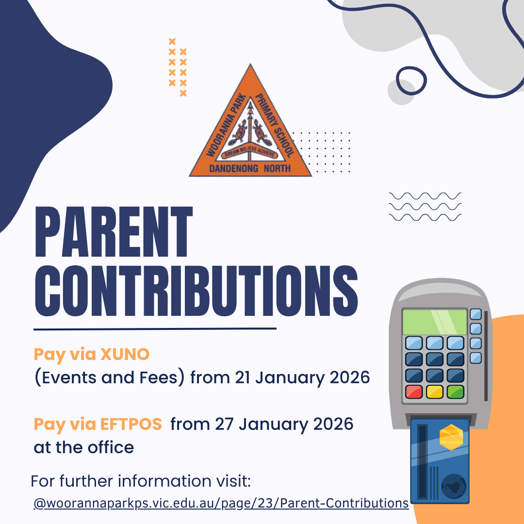 Online payments can be made via XUNO (Events and Fees) from 21 January 2026 or alternatively the school will be open as of 27 January 2025 to receive parent contributions via EFTPOS.